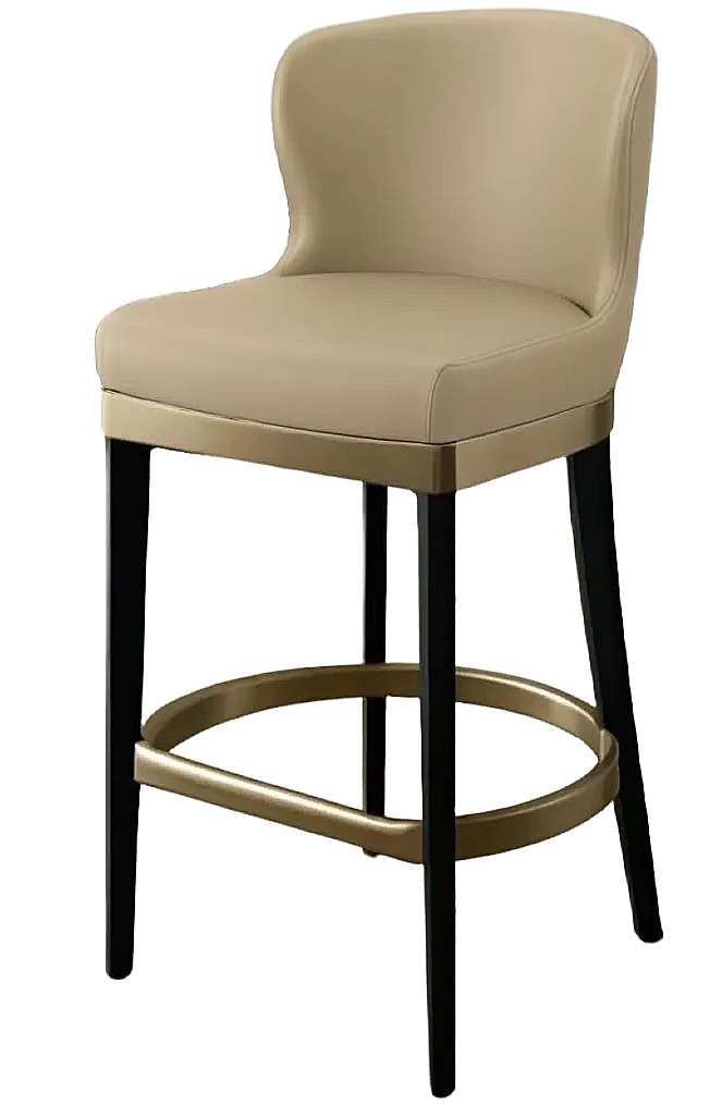 A soft curve meets crisp tailoring in this modern bar stool. Designed with subtle elegance and a metal footrest for durability, it’s ideal for upscale lounges and refned casual spaces.